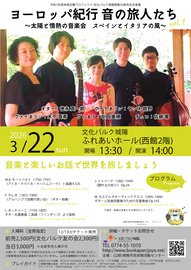 | 文化パルク城陽開館30周年記念事業 ヨーロッパ紀行 音の旅人たち ~太陽と情熱の音楽会 スペインとイタリアの風~ vol.1 |